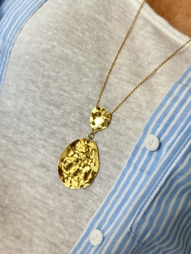 Madrid est un sautoir fabriqué à la main , les formes et le martelage ne pourront jamais être identiques il pourra donc y avoir une légère différence avec la photo