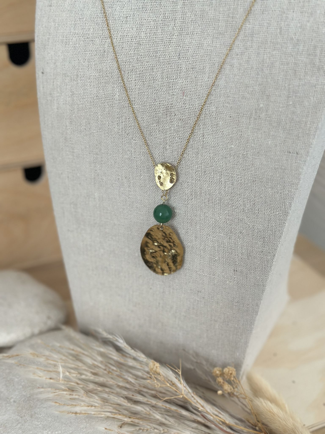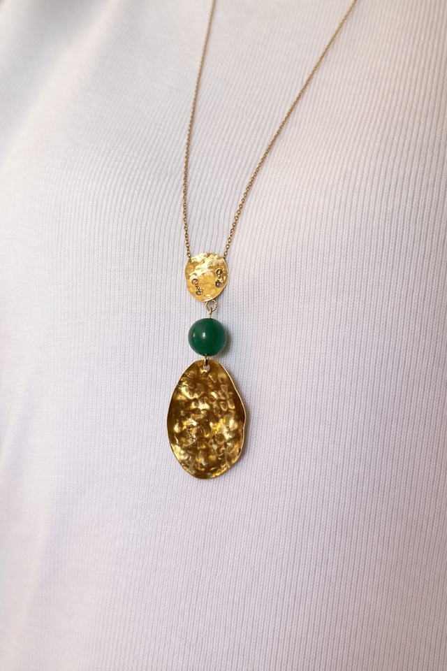 💛 Matières : laiton martelé à la main, perle naturelle, chaîne en acier inoxydable